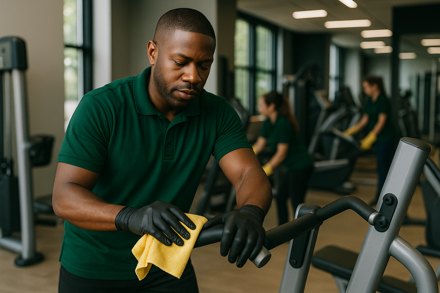 We disinfect gym equipment, locker rooms, and common areas, ensuring a healthy environment for all members.