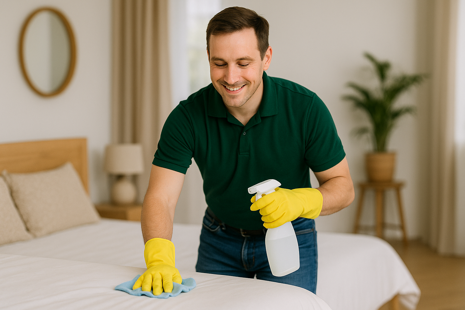 We handle quick turnovers between guests, fully cleaning bedrooms and bathrooms while restocking essential supplies.